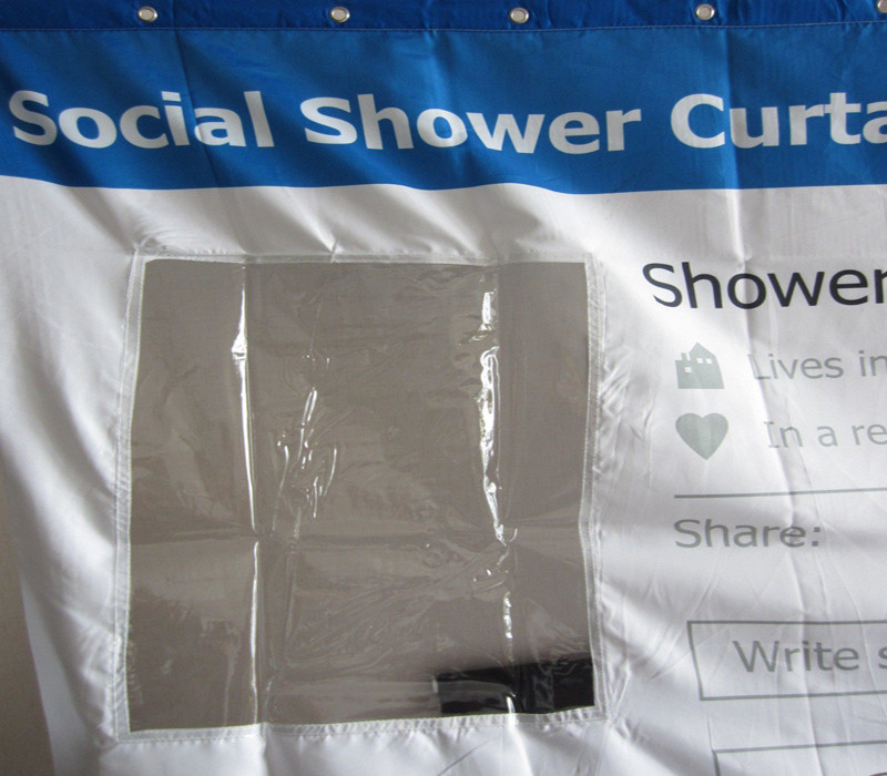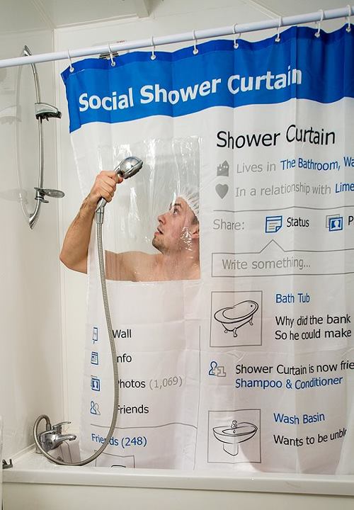 Социальная занавеска для ванной и душа выполнена в виде главной странички в соц. сети, поможет чувствовать себя во время принятия водных процедур также комфортно, как и в Интернете. Данная страничка-занавеска интересна и тем, что имеет прозрачное окошко, которое в реальной социальной сети было бы заполнено вашей аватаркой. Шторка социальная сеть подойдет для любой ванной или душа, на ней изображены шуточные надписи, говорящие о вашем статусе в данный момент. Надписи сделаны на английском языке и страничка очень напоминает аналогичные Вконтакте и FaceBook. Размер социальной занавески 180см х 180см, это кстати стандартный размер для большинства шторок для ванн и душа. Чтоб посмотреть все разновидности социальных шторок и занавесок для ванной и душа, в поисковой строке выбранного магазина введите "social shower" или "social curtain".