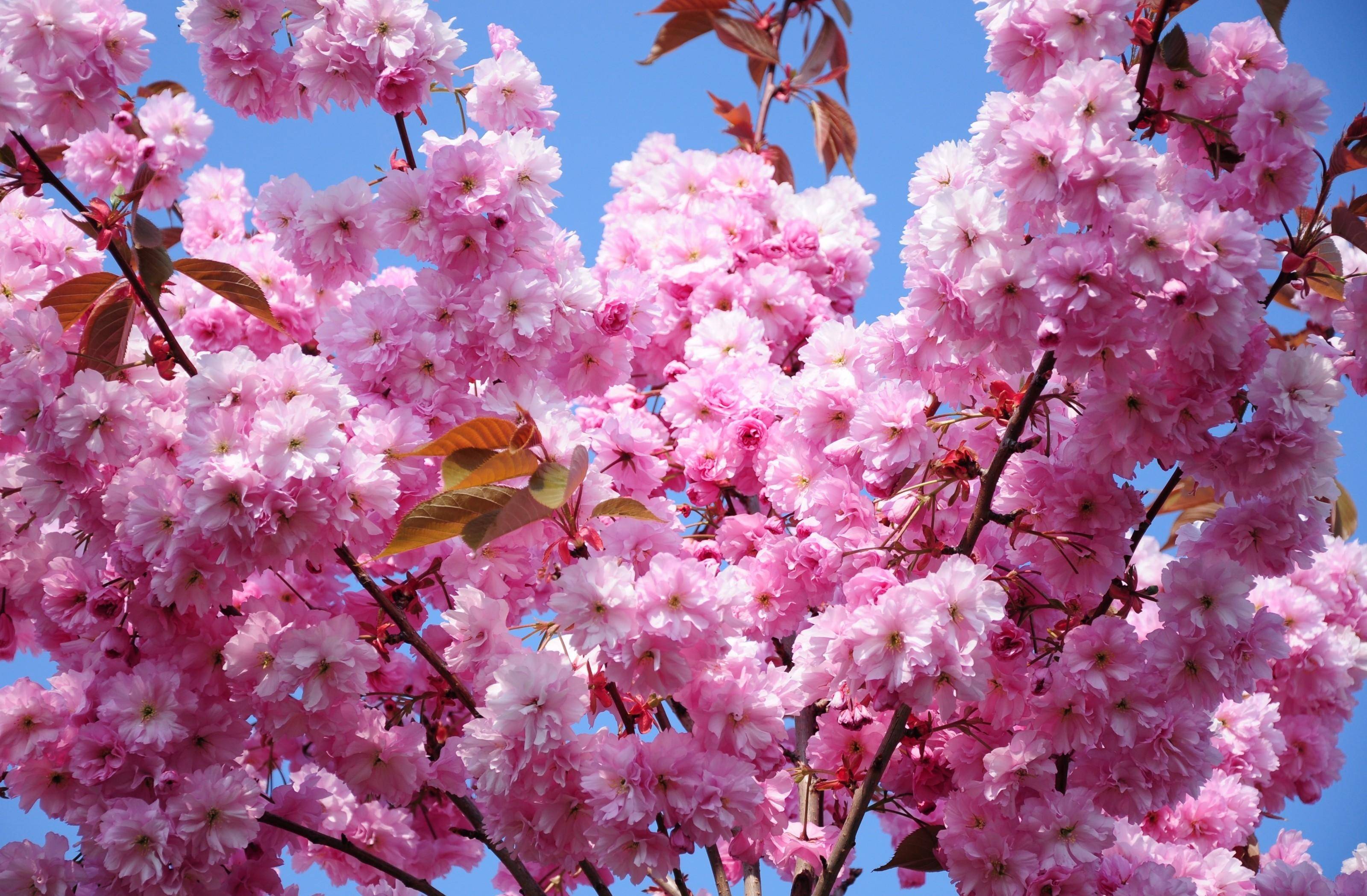 Японская Сакура Декоративное дерево имеет зазубренные листья. С наступлением осени они красятся в пурпурный цвет. Присутствуют обильные и большие (4-5 см) махровые розовые или белые цветочки. Собраны они в кисти по 7-9 штук. И листья, и цветки расцветают в мае. Комнатная сакура способна украсить как помещение в офисе, так и в доме.
