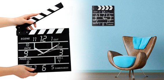 Эти часы в виде режиссерской хлопушки предназначены в первую очередь кино-любителям. Большой размер и высокое качество делают их весьма похожими на настоящую режиссерскую хлопушку, которую используют в кино.