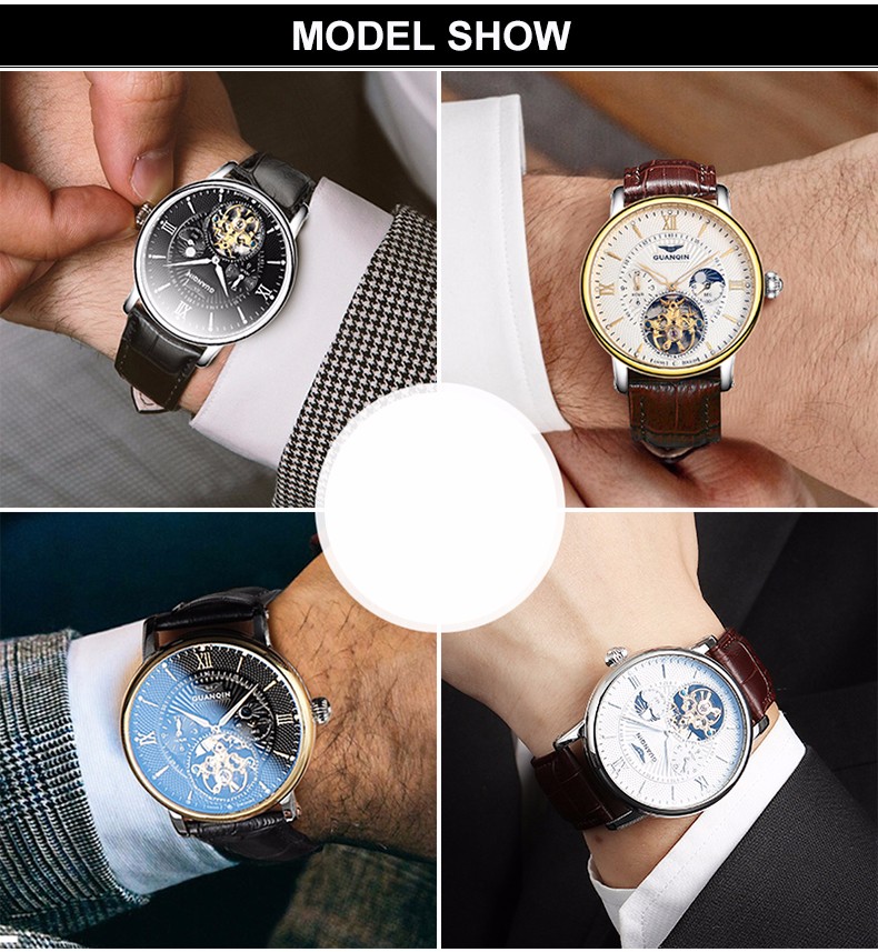 Часы изготавливаются из качественных материалов с применением современных производственных процессов. Продукция Guanqin имеет хорошие эксплуатационные характеристики. Часы надежные и прочные.