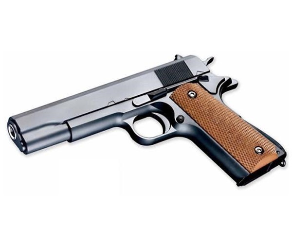Модель идентичная культовому Browning, который участвовал во Второй Мировой Войне. Классический черный цвет корпуса сделан из цинкового сплава. Тяжелый и мощный за счет тугих пружин и металлической обоймы на 14 пластиковых пуль. Стреляет со скоростью 95м/с. Пробивает насквозь алюминиевую банку при выстреле в упор. Не имеет предохранителя. При плохом освещении может сойти за боевой.