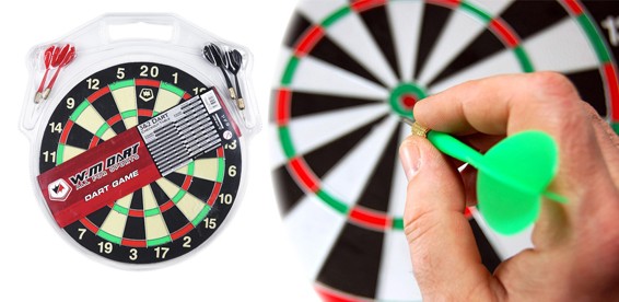 Для игры в Дартс нужна только мишень и дротики. Мишень вешается на стену на высоте 173см от центра мишени до пола. Крепление входит в комплект мишени. Броски осуществляются с расстояния 237см. Комплект дротиков состоит из 4 штук, каждый дротик комплектуется оперением и хвостовиком, удерживающим оперение. Оперения и хвостовики съемные и их можно легко заменить при повреждении.