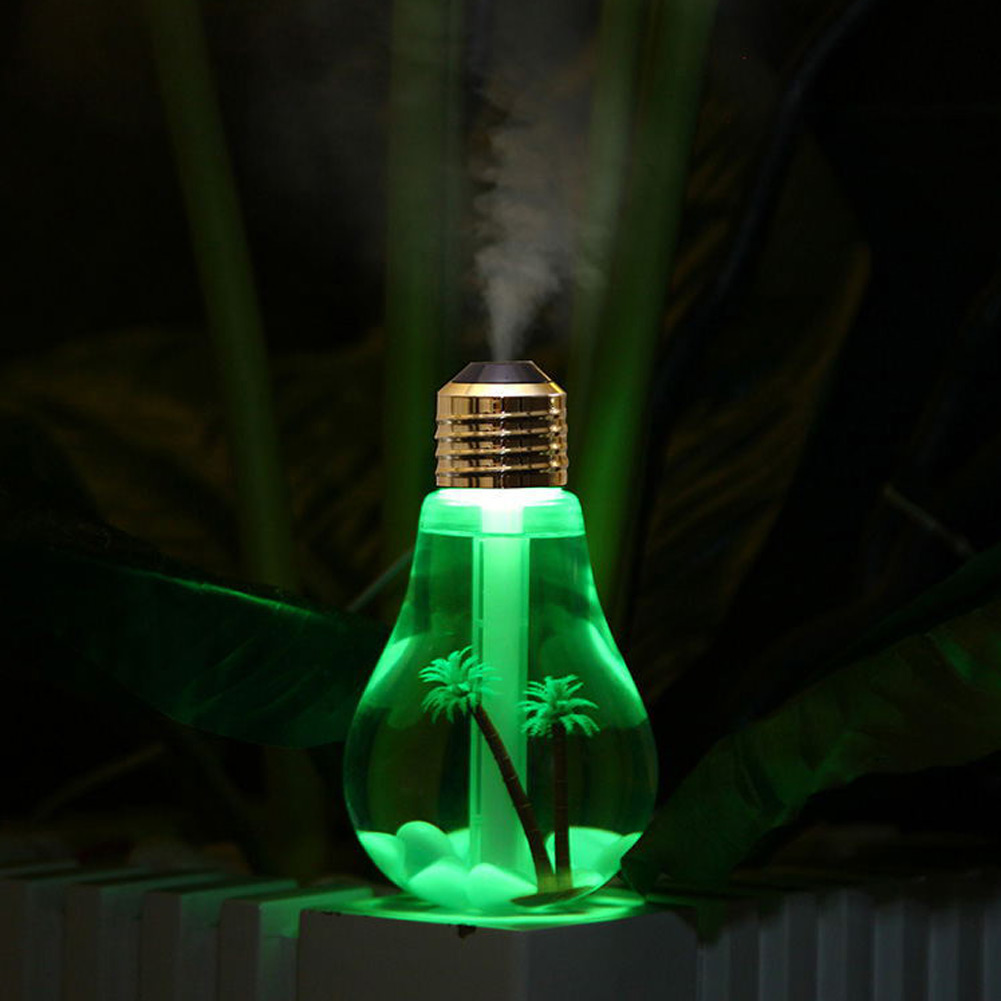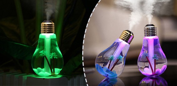 Увлажнитель воздуха-ночник 2 в 1. Семь цветов могут сменять непрерывно сменять друг друга, либо можно выбрать один из них. Автоматическая остановка, если уровень жидкости на минимальной отметке.