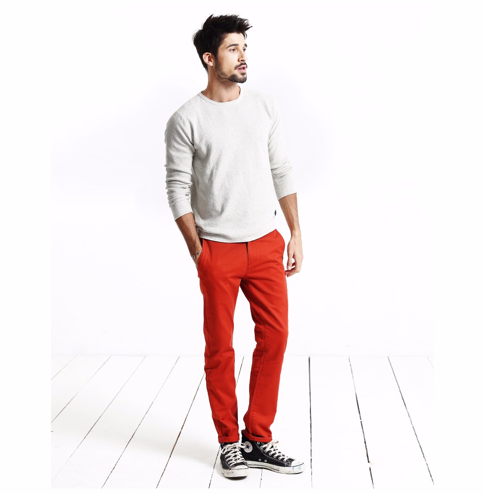Брюки-чино покроя "слим". Планка застежки на молнию. 2 боковых и 2 задних кармана.