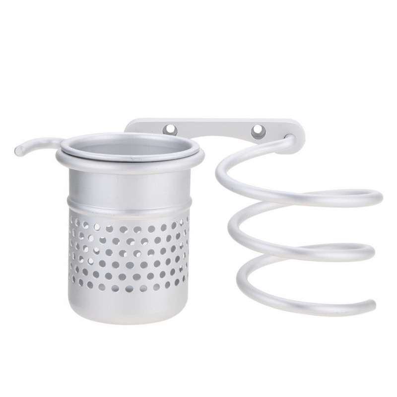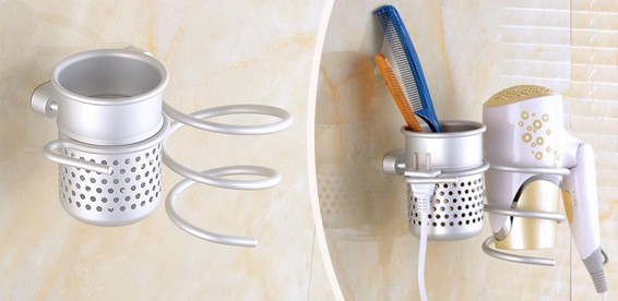 Практичная и современная конструкция держателя для фена, выполненного с покрытием «матовый хром», удачно дополнена перфорированным стаканом для расчесок и щеток, а также удобным крючком для мелочей. Это делает аксессуар многофункциональным и очень подходящим для монтажа в условиях ограниченного пространства.
