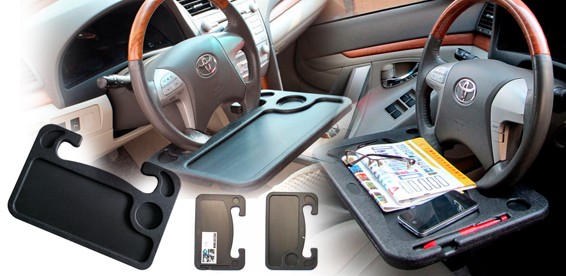 Может использоваться как удобная дорожная подставка под ноутбук, как письменный столик под бумаги и офисные принадлежности, под еду, напитки и прочее.