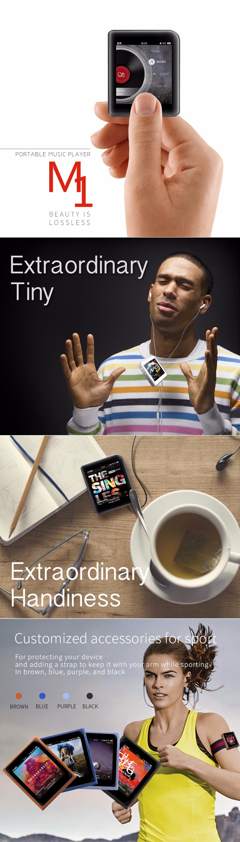 Сделан M1 практически полностью из алюминия и стекла. Рамка корпуса выполнена из металла, на задней панели — глянцевая пластиковая крышка, имитирующая стекло. Сверху есть небольшая пластиковая заглушка, закрывающая антенну. Плеер выпускается в нескольких цветовых вариантах.