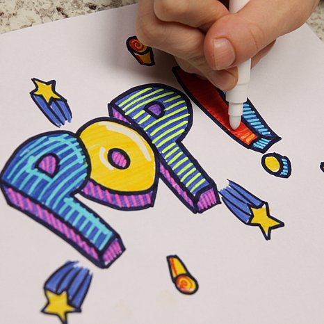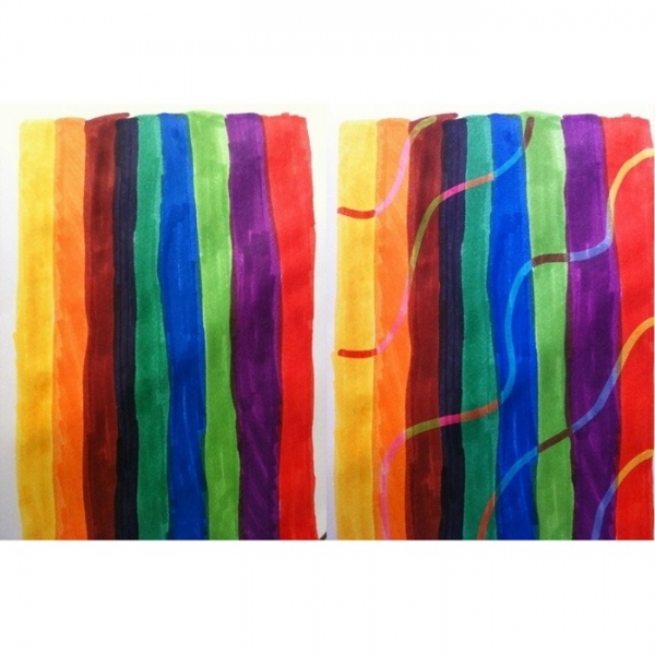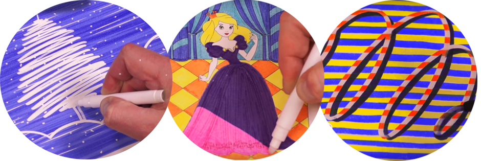 Секрет «волшебности» прост, если провести белым фломастером-проявителем по рисунку, то он поменяет свой цвет. Так желтый превратится в красный, синий в голубой, красный в желтый, черный в фиолетовый, зеленый в красный.