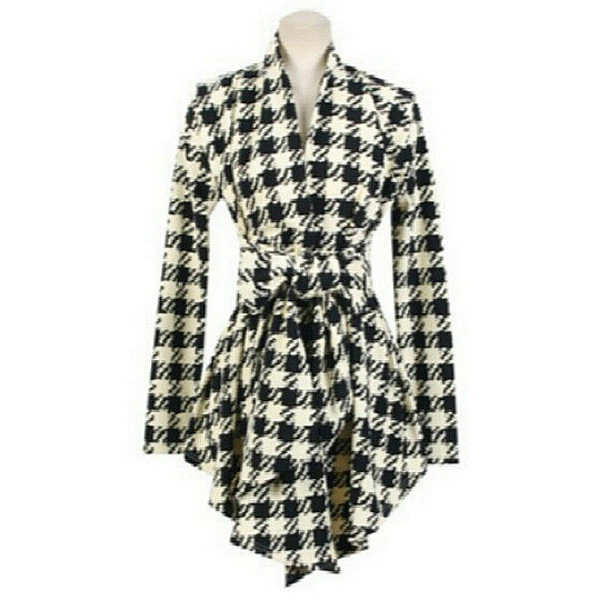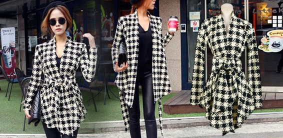 Яркая и стильная модель: кардиган с воротником и рисунком «гусиная лапка».