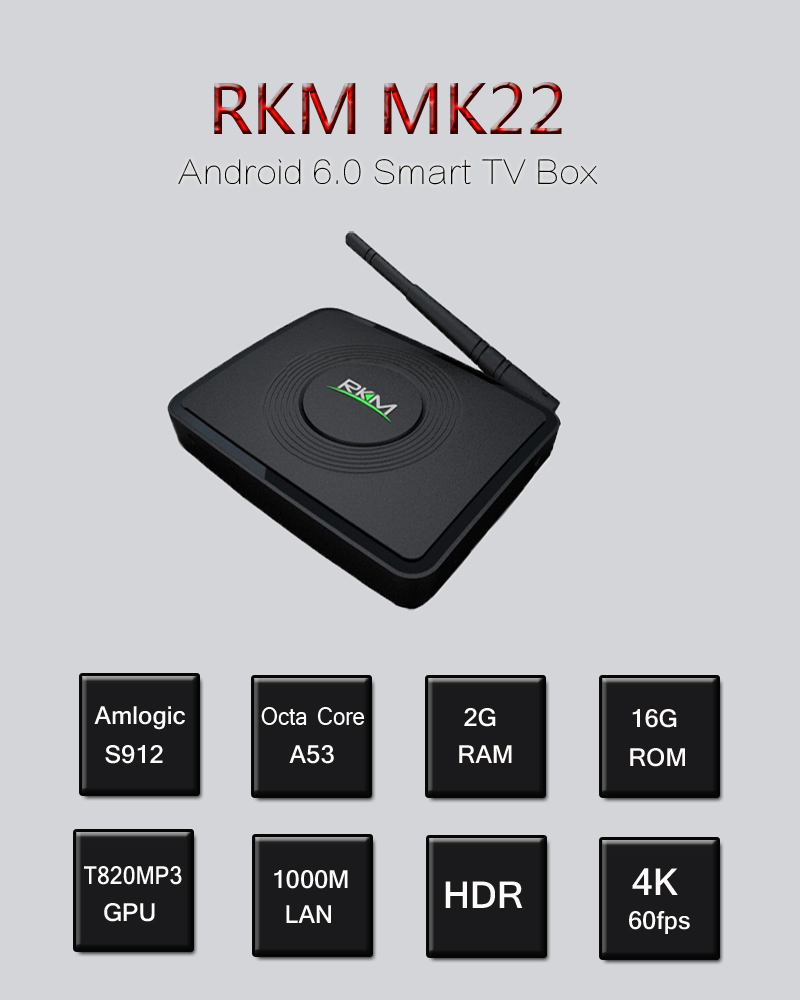 Rikomagic MK22 работает с Android 6.0 Amlogic S912 Octa core CPU, который гарантирует высокую производительность и стабильность.