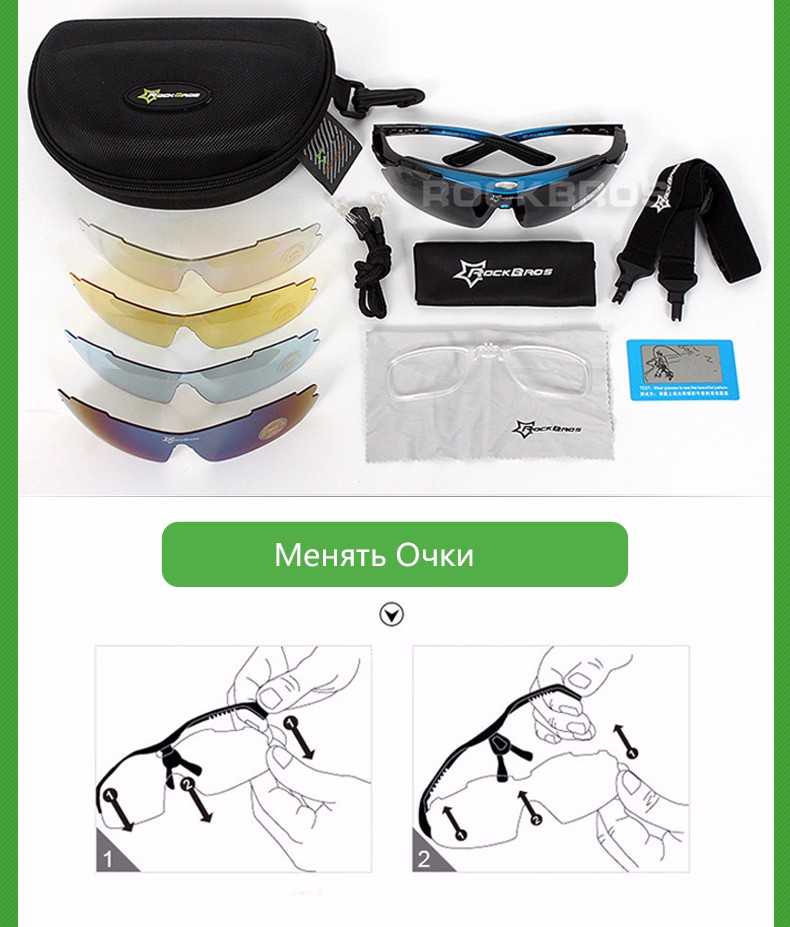 Спортивные солнцезащитные очки ROCKBROS со сменными стёклами (5 видов). Идеальны для велосипедистов!