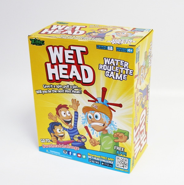 Суть игры в водную рулетку Wet Head заключается в следующем: игрокам предлагается по очереди надевать шлем и крутить рулетку. В зависимости от поля, на которое укажет стрелка рулетки, из предварительно наполненной водой емкости сверху шлема вытаскиваются стержни. Значения на полях могут быть такими: "Пропускай очередь", "Крути еще раз", "Вытащи 1 стержень", "Вытащи 1 стержень и крути еще раз", "Вытащи 2 стержня". Семь стержней удастся вытащить без последствий, а вот один повлечет за собой поток хлынувшей на игрока воды, на голове которого надет шлем! Соответственно, чем меньше в шлеме остается стержней, тем больше вероятность быть облитым. Играя в водную рулетку "Мокрая голова", как и в классической русской рулетке, можно полагаться только на свое везение и удачу!