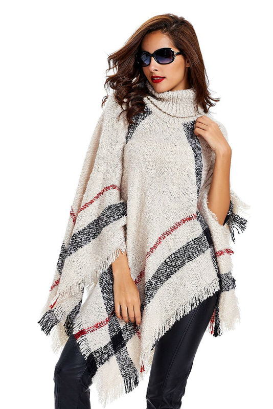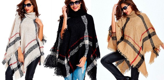 Тёплое пончо в крупную клетку с высоким горлом - это желанный предмет в гардеробе каждой девушки! Свободный и вместе с тем очень комфортный силуэт не оставит равнодушных и придется по вкусу даже самым взыскательным дамам. Может стать прекрасным подарком для мамы или подруги.