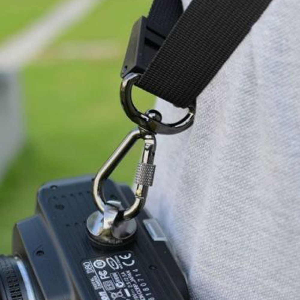 Черный плечевой ремень предназначен для быстрого доступа к фотоаппарату. Он позволяет удобно размещать фотоаппарат у бедра или поясницы, высота размещения регулируется, беспрепятственно поднимать его к глазам и опускать обратно. Черный плечевой ремень крепится к фотоаппарату через специальный металлический крепеж который идет в комплекте.