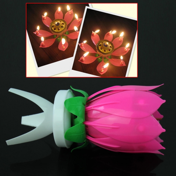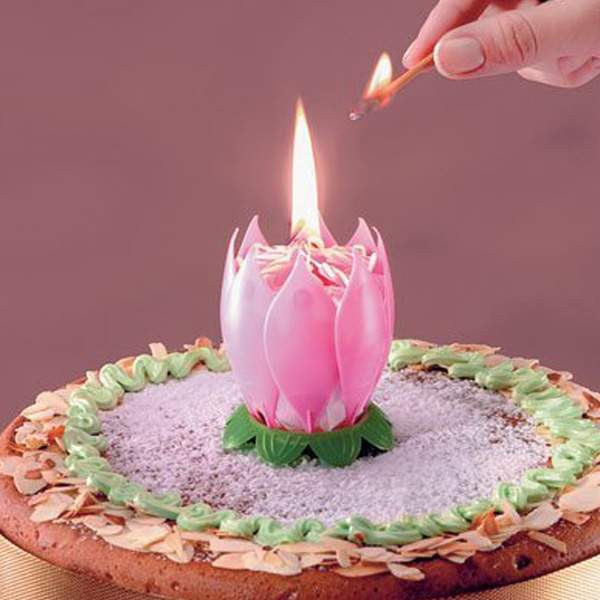 При помощи специальной подставки, на которой закреплен бутон цветка, он устанавливается в центр торта. Используя специальную палочку (входит в комплект), зажгите свечу-бенгальский огонь. Пока горит бенгальская свеча - бутон цветка раскрывает свои лепестки - на каждом из которых зажигается маленькая свечка - цветок начинает играть музыку "с днем рожденья" (при этом цветок не крутится).